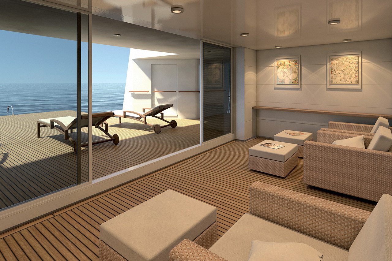 The upper deck is fully dedicated to the Owner, with a breath-taking 270-degree scenic view from the Master Suite, which is directly connected to the forward looking terrace and the spectacular private “beach” with the flush-with-deck pool. Featuring 640m2 of free teak decks, including 240 m2 of aft open space on the Main Deck, 770 m2 of luxurious accommodation “wrapped” in 200 m2 of glass surfaces, Project Light represents a new philosophy in the super yacht world.